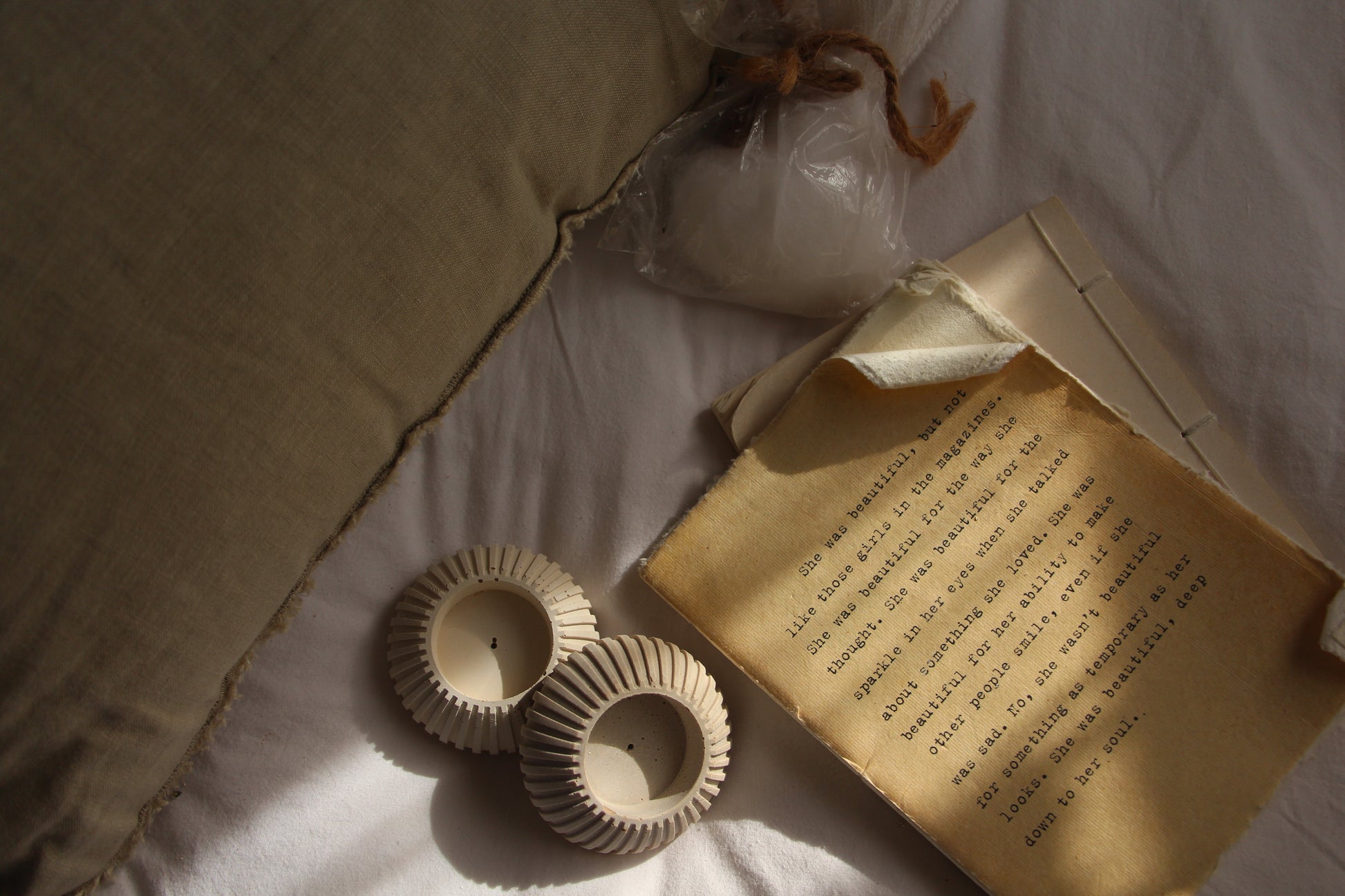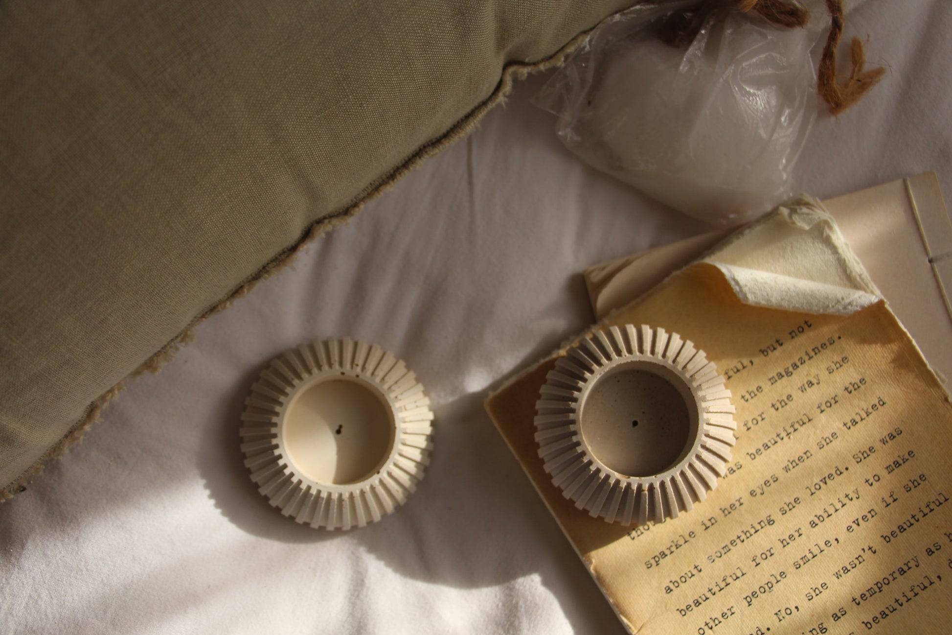 פמוטי פסים לנרות שבת העשויים בטון בעבודת יד