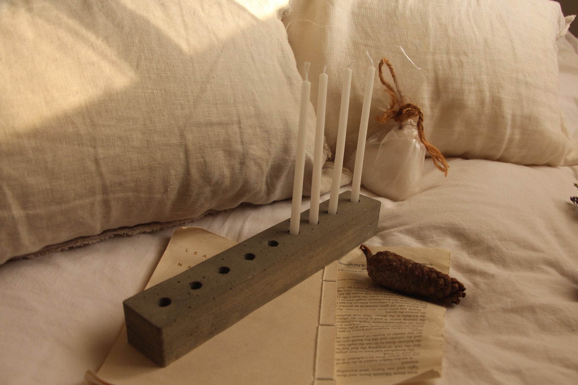 !חנוכיית בטון דקורטיבית, יצוקה מבטון בעבודת יד שלנו - מושלמת לחג