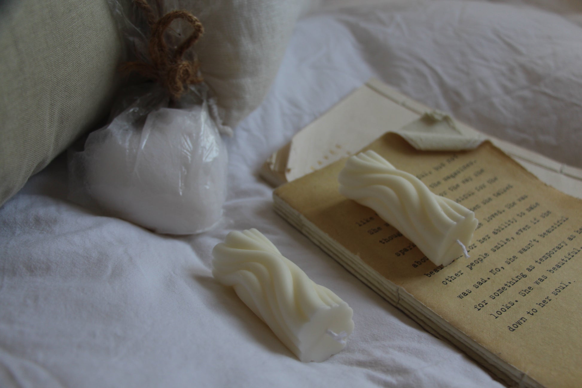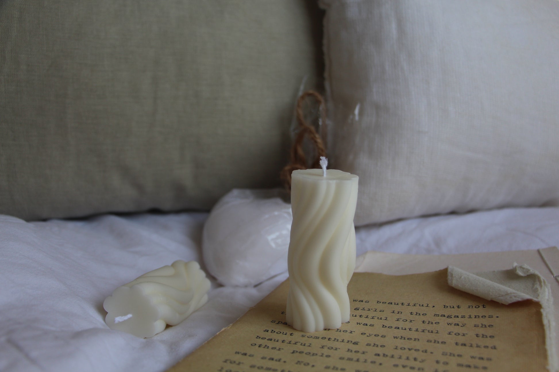 נר בטקסטורת גלים, עשוי שעוות סויה בניחוח עדין ונעים של אגס ופרזיה